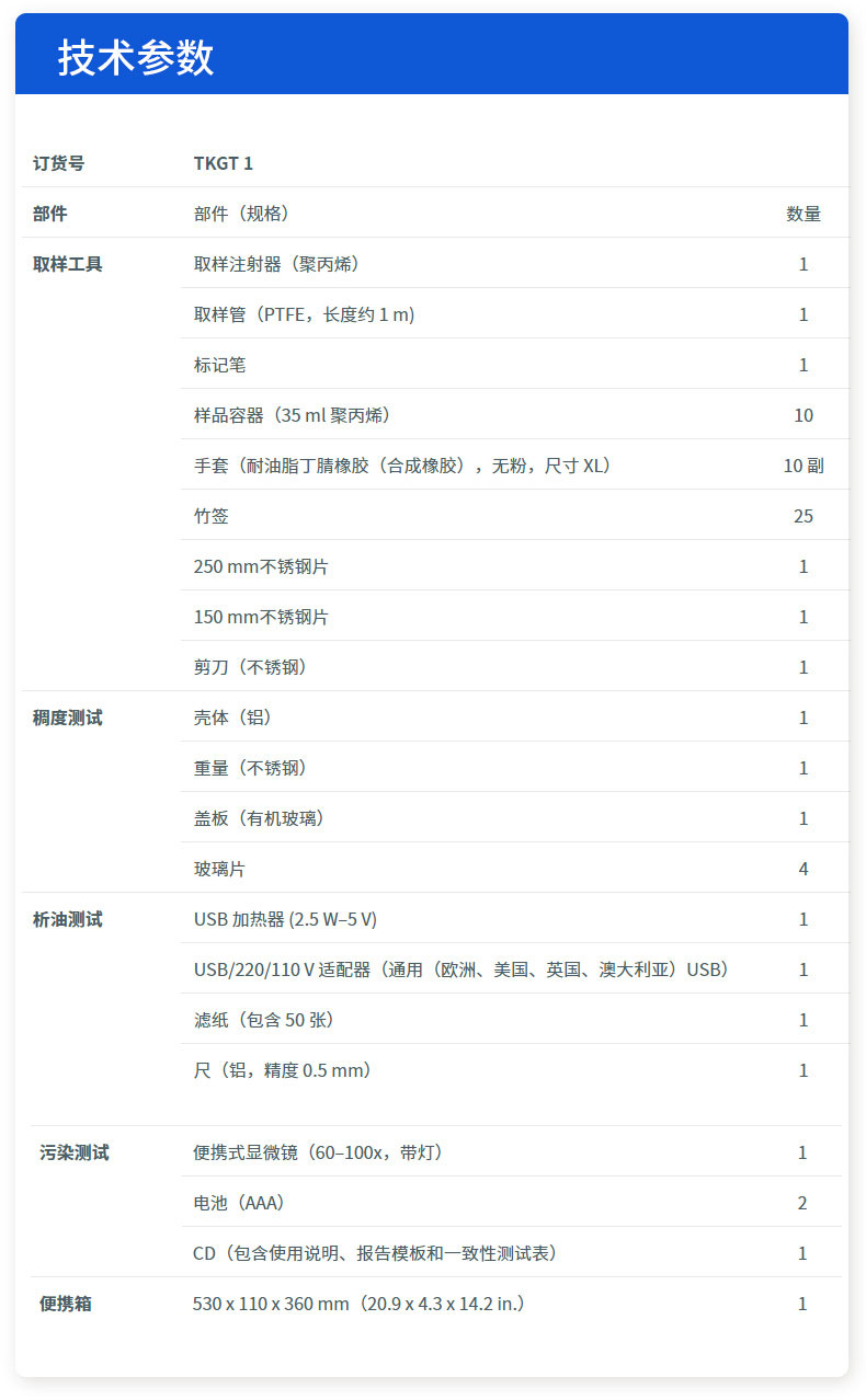 润滑脂测试包 TKGT 1 可现场使用的便携式润滑脂分析组件